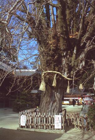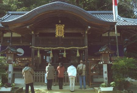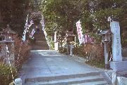 | 豊田の田園の松並木の広い参道を行くと500m山麓高台にこの神社がある。立派な社殿で広い境内があり、老大木が茂り苫むしてさすがに古の大社たる風格が十分である。後には屏風のような小高い葛木の前山が背景をなし南の谷は、深く黒い密林に覆われ、太古の神秘境である。この宮地をカミタチといったのは、ここに神が降り立たれた故である。また、この神社は願い事を一言だけ聞いてくれる「一言(いちごん)」さんと親しまれ「無言まいり」の神として広く信仰されています。 |