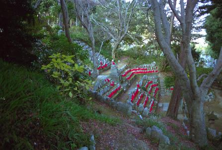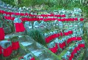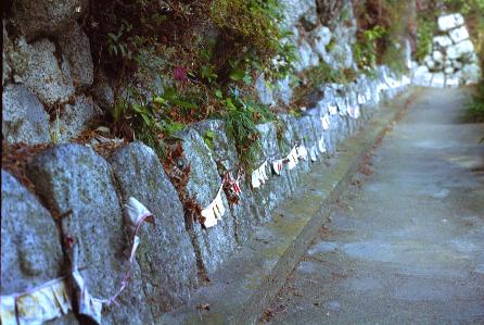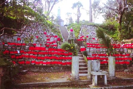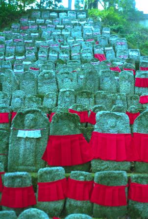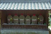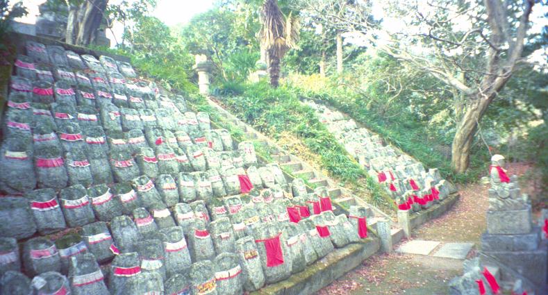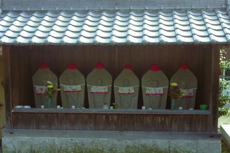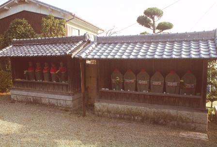南北朝時代、城主なら原氏が楠木正成公とともに南朝に味方し、北朝と戦ったとき家族や地元の人々が身代りに奉納したと伝えられ、そのため身代り石仏とも呼ばれています。