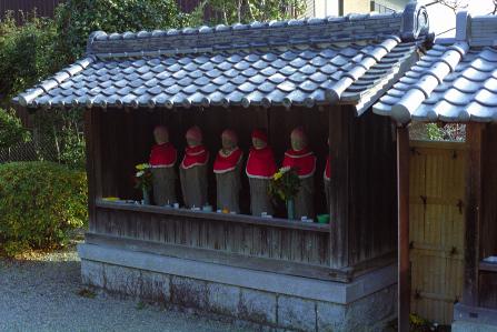 九品寺は奈良時代、聖武天皇の勅により行基が開祖した戒那千坊の一つで、室町時代に兵火をまぬがれて、今に残ります。本尊の阿弥陀如来坐像は藤原時代と見られ優しい円満な姿で気品が高く稀にみる優秀作である。(重要文化財)